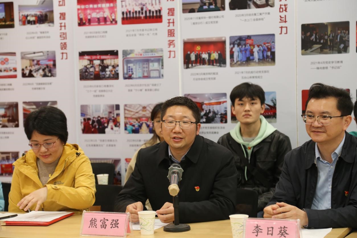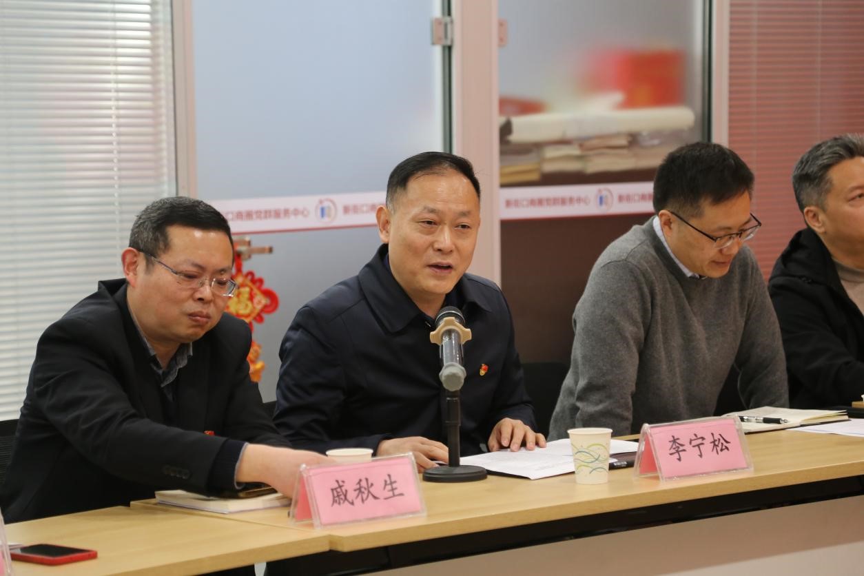 在新街口商圈党群服务中心,李日葵介绍人文学院开展“党建+”模式在引领学科交叉融合发展、凝聚师生团结奋进以及助力乡村振兴方向的目标和工作进展。戚秋生从商圈组织建设、队伍建设和联动发展三个方面,介绍了在新经济组织、新社会组织中开展“两新”党建,达到从促进企业、员工健康发展到促进商圈高质量发展的历程、工作方法和取得的成绩。与会的政企事业单位代表分别就党建工作方法、党建引领促进业务发展经验、优势互补、资源共享以及共建意愿进行了充分的交流。
