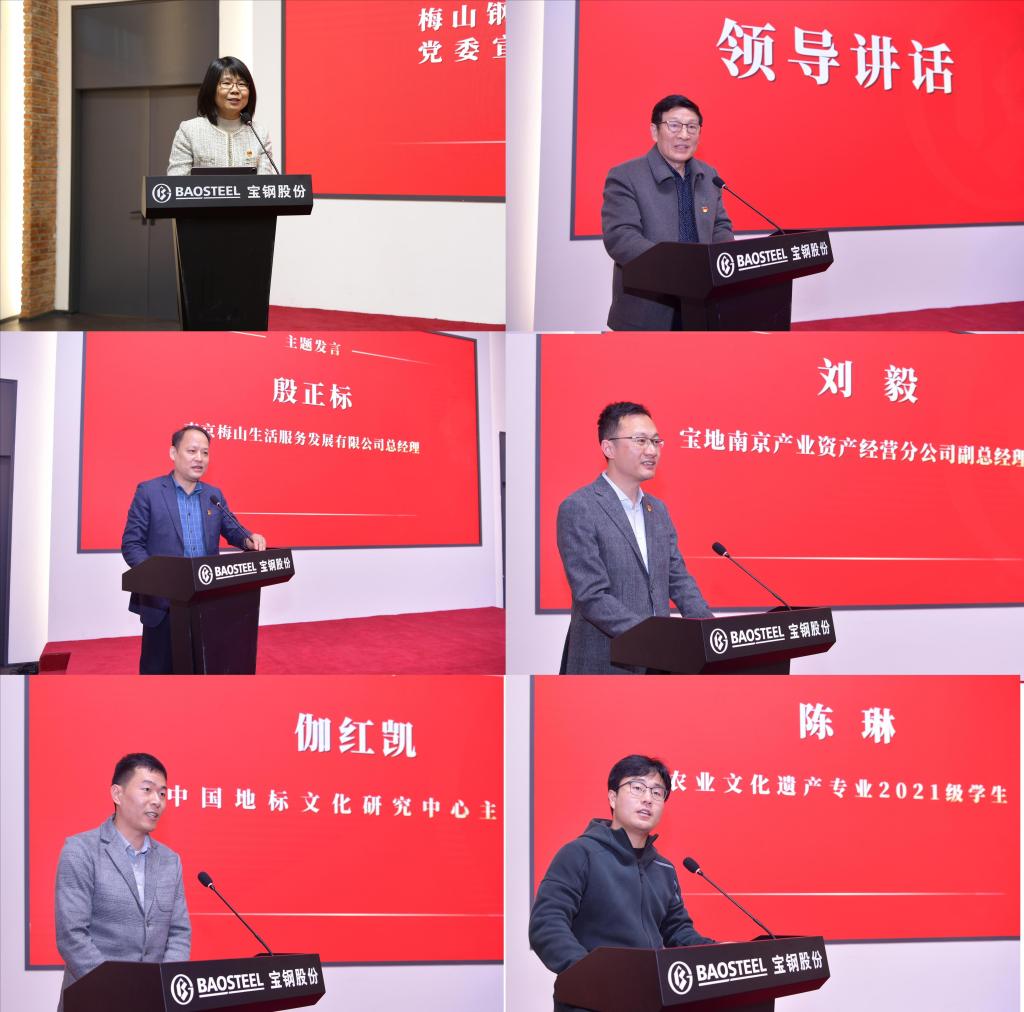 共建仪式最后,盛邦跃总结讲话,他指出,学院与上海梅山钢铁股份有限公司共建基地是理论教学与实践教学相结合的有益尝试,是构建“新文科”视角下校企联合教学、联合培养人才的新路径。梅山工业文化旅游区优质丰富的旅游资源与学院文化遗产专业高度契合,双方可以在人才供需,成果转化、产学研合作等方面进行全方位合作,优势互补,互惠互利,联合发展。