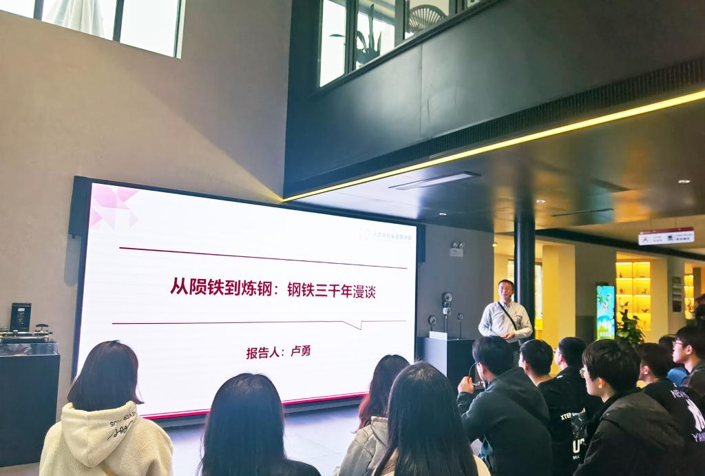 挂牌仪式结束后,李日葵在厂史陈列馆给学生们上了一堂主题为《做中华优秀传统文化的研究弘扬者》的微党课,卢勇从文化遗产专业的视角给学生们讲授了题为《从陨铁到炼钢:钢铁三千年漫谈》的专业课。老师们和学生们参观了梅山钢铁厂史陈列馆、梅山钢铁文化长廊、慢铁9424,感受了梅山钢铁近半个世纪的发展历程。