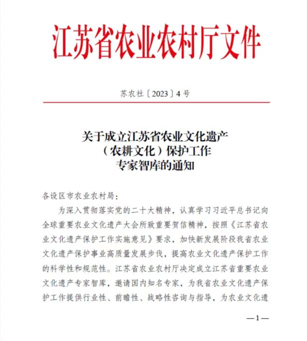 近日,江苏省农业农村厅苏农社[2023]4号文件发布了《关于成立江苏省农业文化遗产(农耕文化)保护工作专家智库的通知》,做爱片