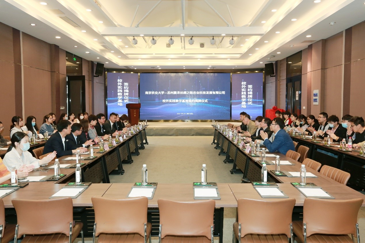 与苏州震泽丝绸之路农业科技发展有限公司在太湖雪蚕桑文化园会议室,举行了双方共建实践教学基地的签约及授牌仪式。震泽镇党委副书记沈小林,全国劳动模范、苏州震泽丝绸之路农业科技发展有限公司董事长胡毓芳,做爱片
