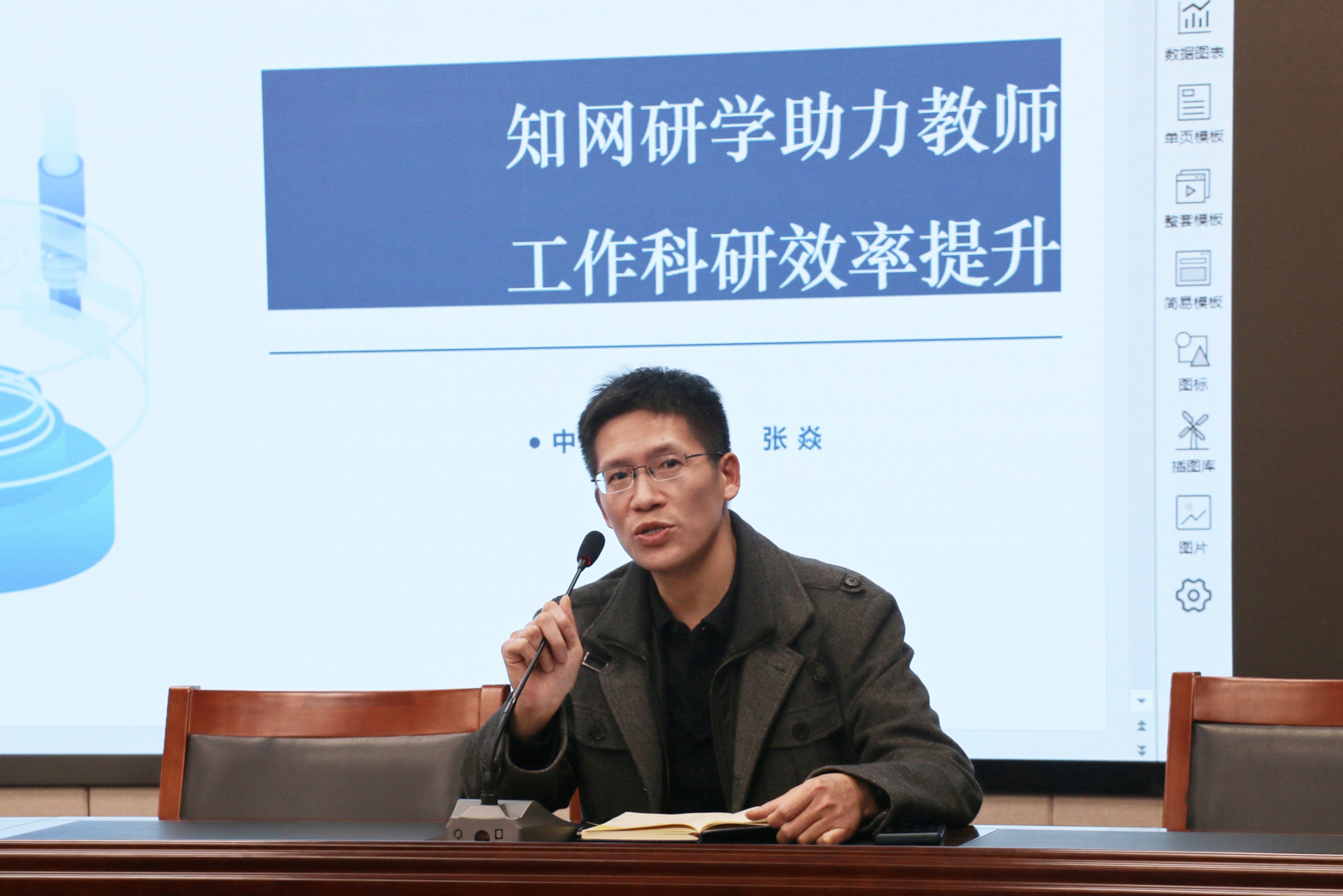 作了题为“知网研学助力教师工作科研效率提升”的讲座。副院长路璐、院党委书记助理罗国富及全院60多名教师、研究生参加了本次讲座。讲座由路璐主持。