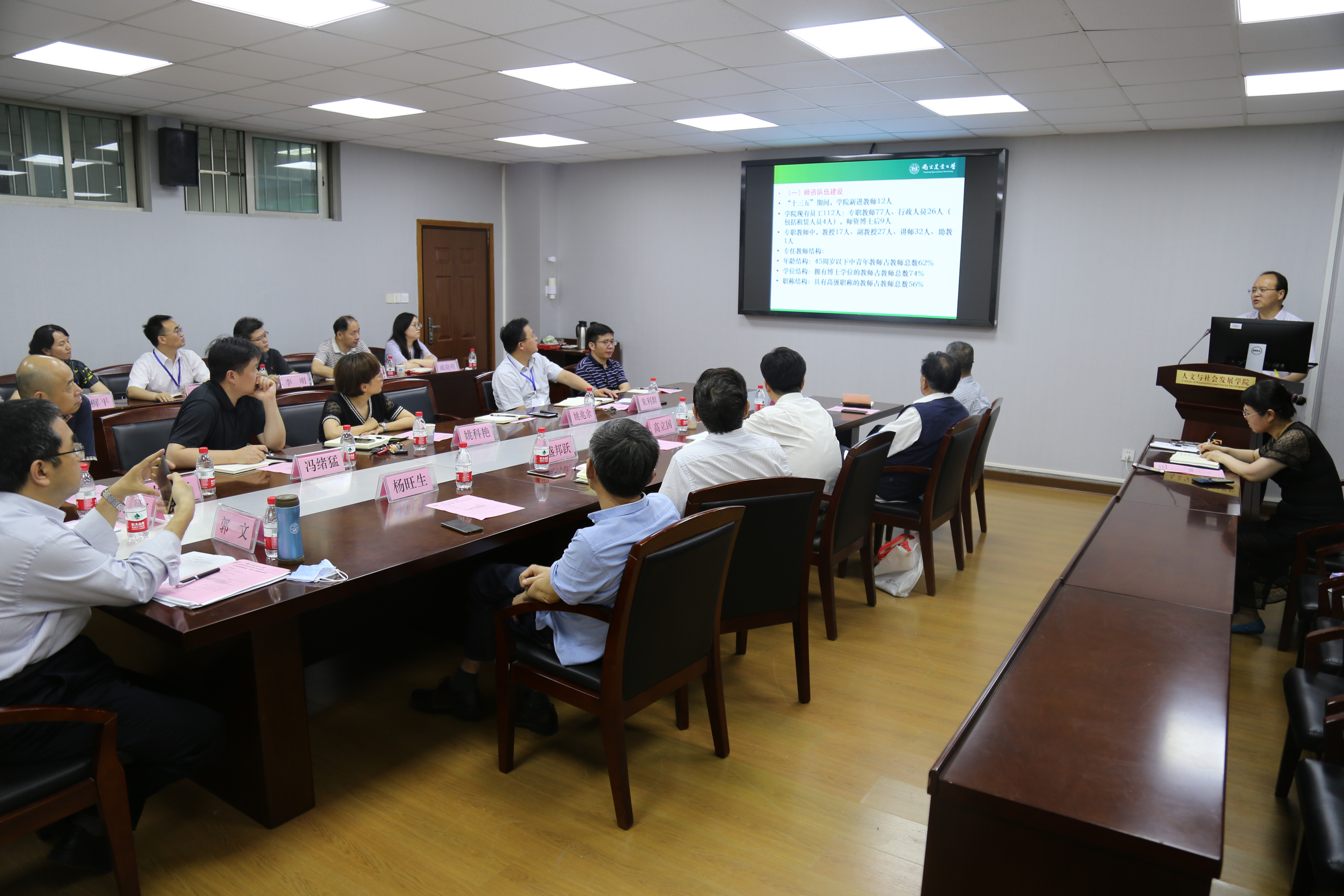 党委副书记、纪委书记高立国,学校原党委副书记、学院第二任院长、中国农业遗产研究室主任、科学技术史学科点负责人盛邦跃,人文社会科学学院首任院长蒋宝庆,学院第四任院长杨旺生,社科处副处长卢勇等应邀出席了会议。学院现任党政领导班子成员、系室主任和教师代表参加了会议。会议由学院党委书记姚科艳主持。