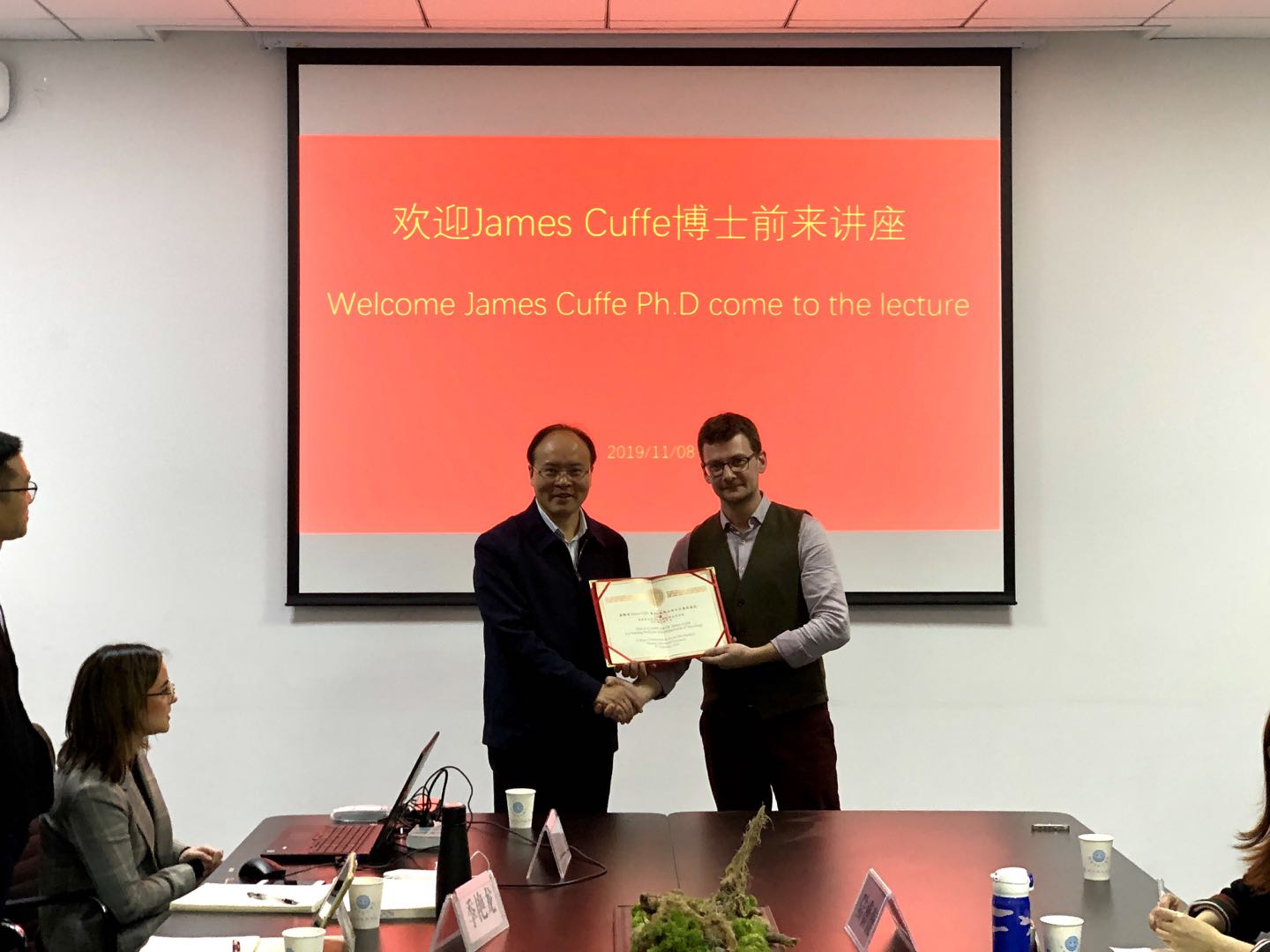 据悉,James Cuffe 博士是一位知名的青年人类学家,目前任教于爱尔兰国立科克大学社会学与犯罪学系。目前已发表20余篇学术论文,出版学术专著2部,主持过多项重要课题。James Cuffe 博士的研究兴趣是科技对人类社会的影响问题,通过社会学、人类学和哲学跨学科方法研究爱尔兰的数字化不平等和数字化排斥问题以及中国的跨文化工作等问题。