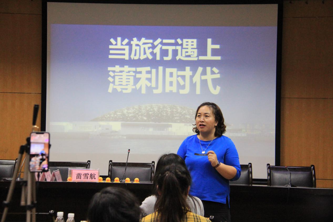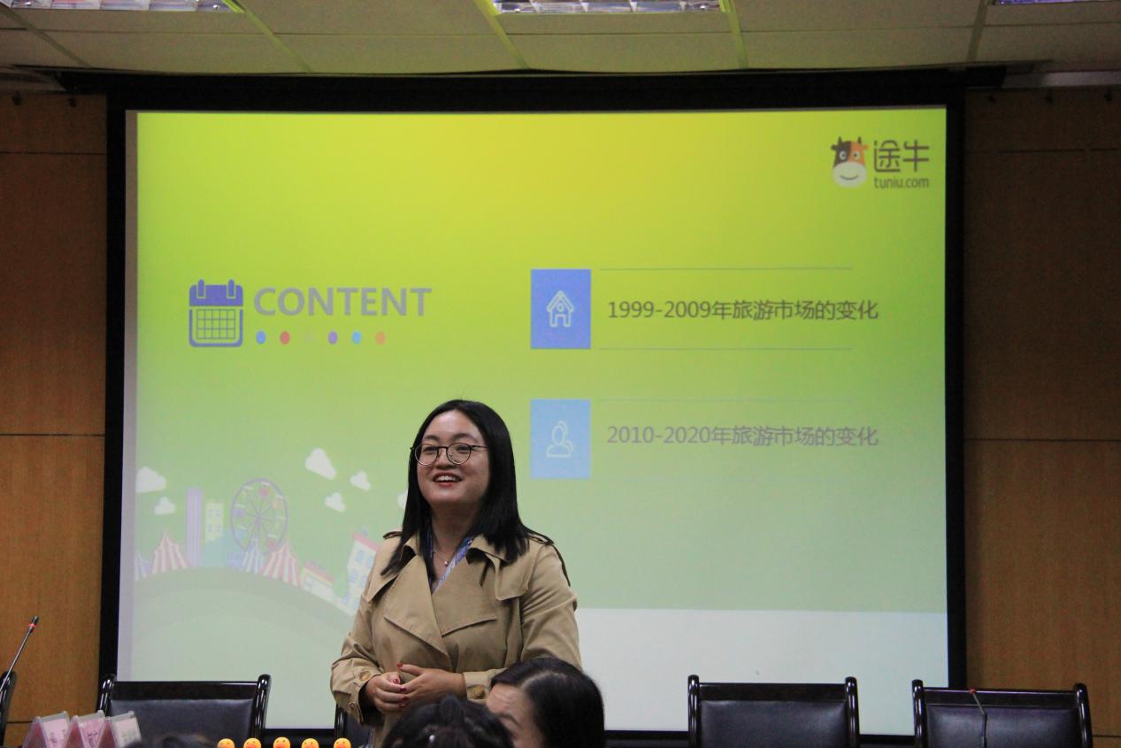 苗雪航是旅游管理系第一届毕业生,分享的时候依旧可以感受到她青春的活力。大师姐向大家分享了旅游的六个时代特征,告诉我们,当前旅游业迎来的并不是人们所认为的薄利时代,而是经营模式改变后的创利时代。她从另一个角度看到了旅游业不一样的未来,当一切都看似饱和的时候,或许就是新生事物出现的时候。这是让我最有感触的地方。