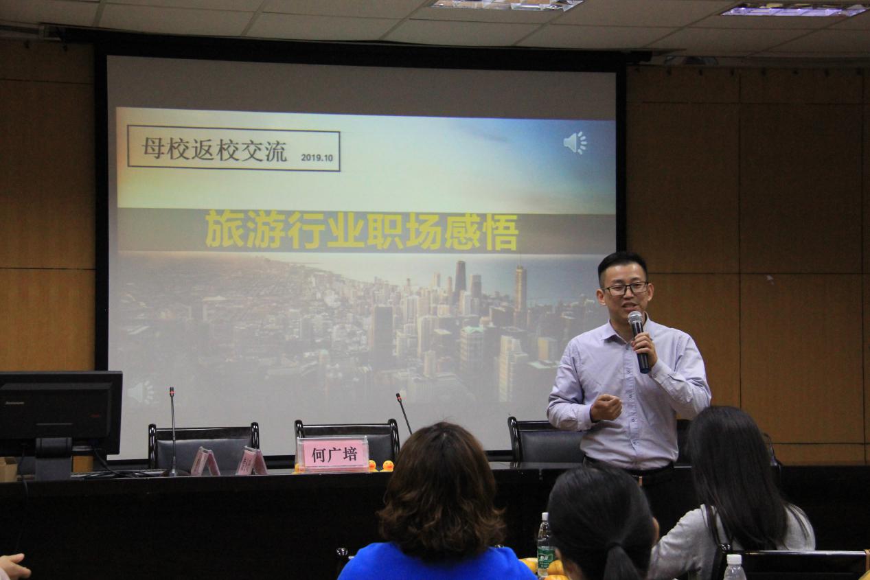 第二届校友返校日之际,2019年10月19日下午,旅游管理专业校友分会在逸夫楼6047报告厅成功举办旅游管理系校友返校交流会。20多位历届校友与在校师生济济一堂,度过了难忘的下午&晚间时光。