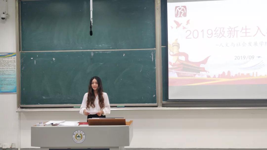 ,表达了对2019级新生的欢迎之情、期待之意,介绍了人文学院的发展历程和学术特色等情况,姚老师强调,作为一名本科生要在学习生活中不断进行反思,多看书多思考。除此之外,姚院长还对在座的新生提出了四点希望:一是要珍惜时间,不负美好青春;二是要勤奋学习,夯实专业基础;三是要全面发展,提升综合能力;四是要关注社会,实践人文关怀。讲话最后,姚院长对在座新生的大学生活表达了美好的祝愿。