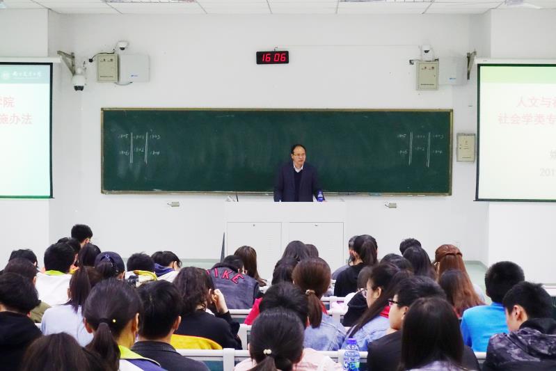 在主楼133教室召开了2018级大类专业分流动员宣讲大会,学院院长姚兆余教授作了总动员,2018级大类专业6个班的学生聆听了宣讲报告。