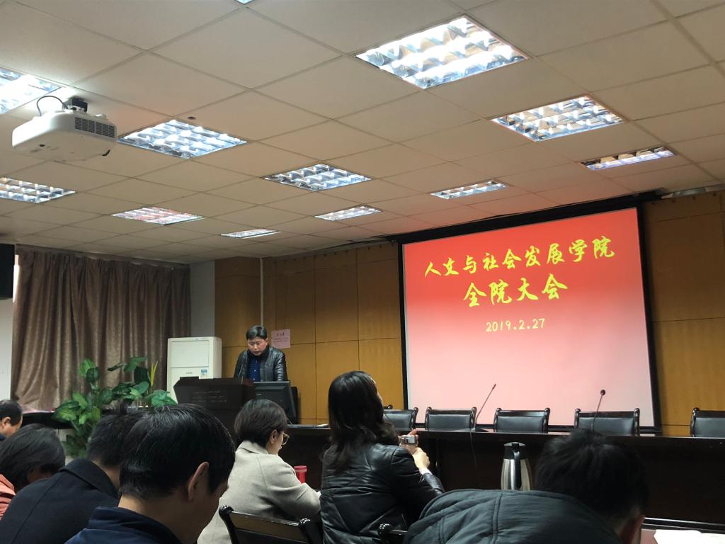 十一届十五次全委(扩大)会议精神,在喜迎建国70华诞之际,学校将迎来第十二次党代会的召开,学院换届工作也将召开。接着汇报了人文学院党委的总体思路,部署了这学期的工作任务和具体目标:扛起主责、担当主业、做好主角、风清气正。