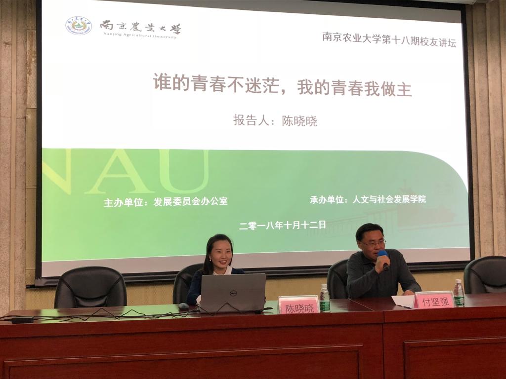陈晓晓表达了她在南农四年的心得体会。在南农生活了四年之后,诚朴勤仁的校训深深印刻在她的骨子里,她相信每个人都是特别的,要学会倾听自己的声音,不要放弃智慧和主见,勇敢是女孩唯一武器,回报终有时。陈晓晓老师以她最喜欢的句子作结:他日若遂凌云志,敢笑黄巢不丈夫!