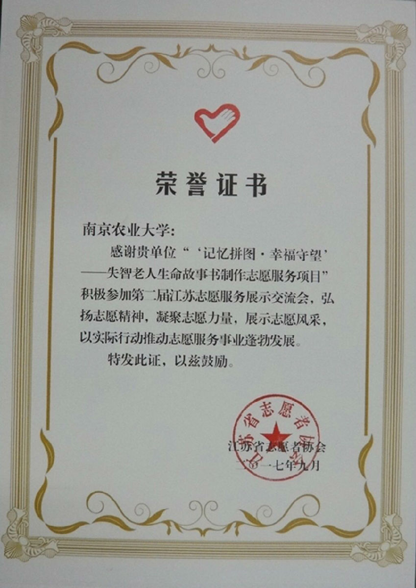社会工作研究生策划并执行的“记忆拼图,幸福守望——失智老人生命故事书志愿服务”项目凭借其优异的表现,荣获铜奖。据悉,本次获得金、银、铜奖的61个项目中,属于江苏高校的项目仅有4项,由社会工作研究生完成的项目仅有做爱片