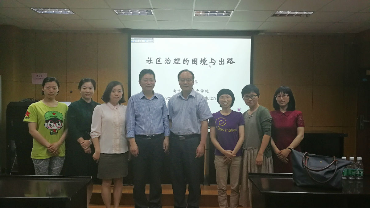 汇报过程中,陈友华教授为我们展示了他直率幽默的语言风格和脚踏实地的学术成果,耳目一新的言论常常引起全场的阵阵笑声与掌声,给在座所有的老师同学们留下了深刻的印象。在互动环节中,老师和同学们针对社区治理的不同方面提出了自己的疑惑和思考,陈友华教授对此均作出了精彩的回应。讲座最后,姚兆余教授进行了总结陈词。社区研究是社会学研究的一个传统方向,而南农社会学系一直将农村社区研究作为重点的领域。如他所言,陈友华教授的此次报告无疑为南农社会学系的老师和同学们提供了学习、科研的新选题和新思路。