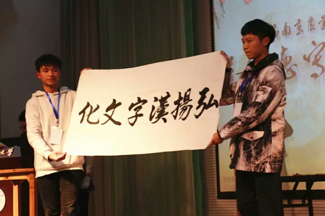 随着比赛的继续,在一个个比赛小组的淘汰中,也不断的有小组脱颖而出,崭露锋芒。但是在紧张的比赛之余,一场美丽舞蹈《笔墨风情》不禁让大家眼前一亮,随后的一幅行云流水般的毛笔字“弘扬汉字文化”更是让观众惊赞不已。