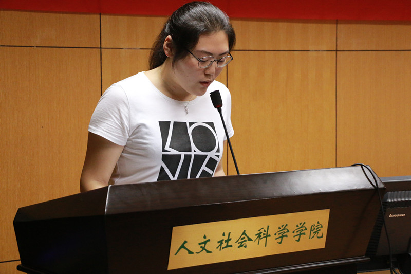颁奖仪式之后,获奖教师代表艺术系副主任季中扬老师和获奖学生代表旅游131班王雨霏同学发表了获奖感言。