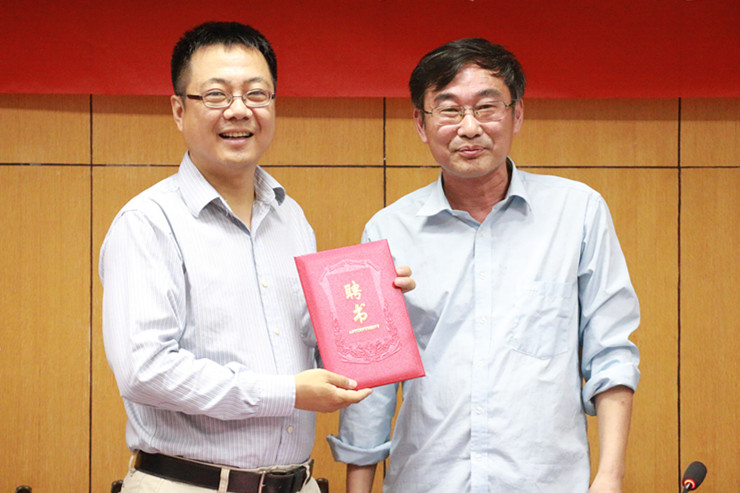 典礼伊始,杨旺生教授向“兆龙新农村建设奖教学金”的设立方------北京奥科美技术服务有限公司颁发了感谢状,并对蓝海先生在农业、新农村建设以及农业教育方面的支持表达了衷心的感谢。之后,杨旺生教授向王航先生、蓝海先生颁发了人文院兼职教授的证书。