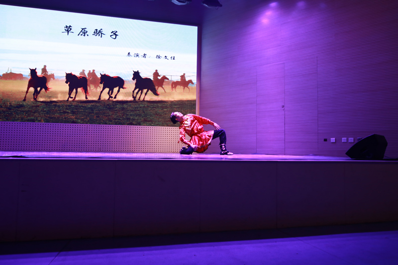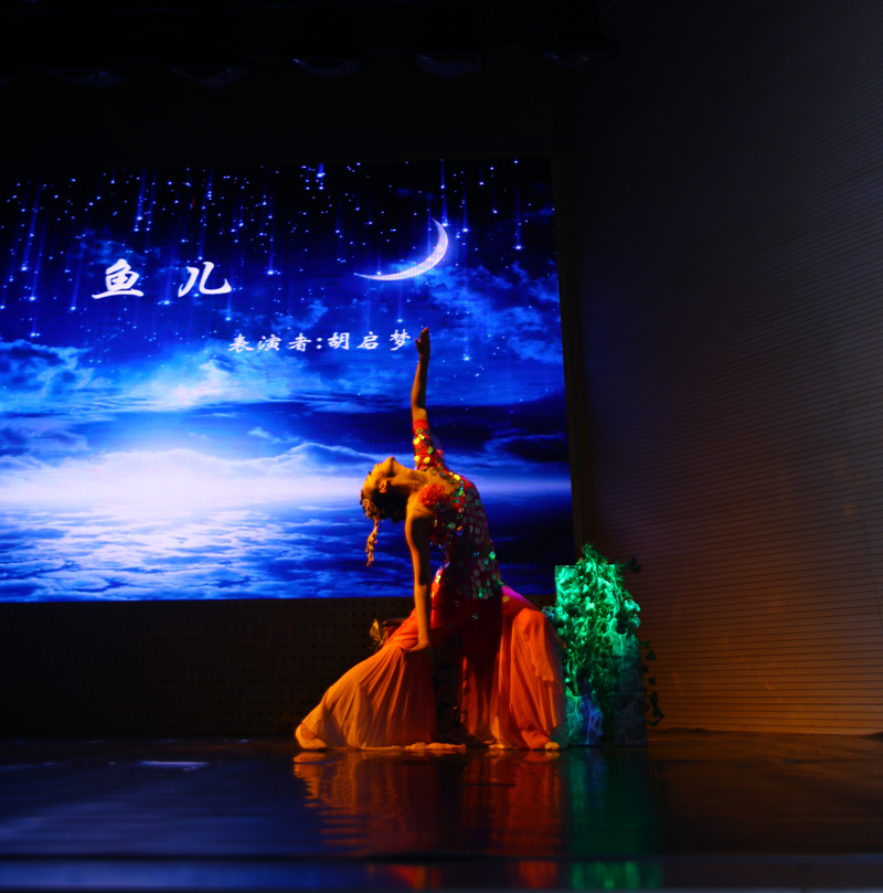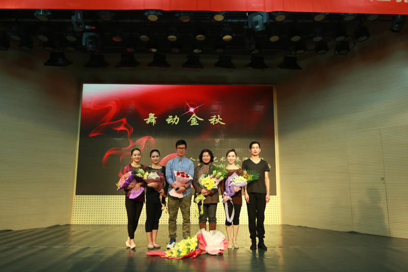 学报副主编宋雪飞、公共艺术教育中心办公室主任朱志平、校团委实践部部长贾媛媛、校团委校园文化部部长朱媛媛、外国语学院侯广旭教授、校新农村发展学院综合科科长严谨、舞蹈专业方向历届毕业校友、本届毕业生家长代表以及学校舞蹈爱好者教师代表。 晚会以江南风韵的集体舞《风荷语笠》拉开序幕,此舞蹈曾荣获江苏省第四届大学生艺术展演舞蹈比赛专业组一等奖,姑娘们纤柔妙曼的舞韵给观众留下了美好的江南情韵。赵思杨同学表演的鄂温克族舞蹈《鄂温克的拉玛湖》,让观众体会到鄂温克族人对拉玛湖深深的思念与感恩之情。赵天羽同学表演的《一滴水》,用那天真童趣而又灵巧的舞姿,高难度的舞蹈技巧表现出缺水山区孩子对雨水的渴望,这个舞蹈已入围2015年江苏省“莲花杯”的决赛,这是江苏省最专业、最高级别的舞蹈赛事,12月将奔赴无锡参加决赛。6位同学表演的舞蹈技巧组合将晚会推向高潮,舞者们个个技术精湛,身怀绝技,现场爆以热烈的掌声、喝彩声、欢呼声为他们贺赞。胡启梦同学表演的傣族舞《鱼儿》,以灵动的身姿模仿了水中鱼儿漫游嬉戏的动态,舞者俏皮的表演紧紧抓住了观众的目光。徐文任同学表演的蒙古族舞蹈《草原骄子》,表达了草原人对草原的热爱。晚会在群舞《时间都去哪了》现代舞中落下了帷幕。胡启梦、赵思扬、赵天羽、徐文任四位同学,用真情给观众展示了大学四年来付出的努力和老师严格要求的成果,他们用舞蹈感念师恩,感念这留下无数欢笑和泪水的母校。晚会结束,观众们久久不舍离去,领导们充分肯定同学们四年来的学习成果,毕业生家长们对教学效果给予了热情的赞扬,毕业校友夸赞观摩舞蹈毕业汇报获得了美的享受。最后,领导们上台与演职人员拍照留念。人文学院表演121班舞蹈专业方向汇报专场圆满收官! 四年的学习和磨练将他们塑造得更有活力,更具社会竞争力。这次专业汇报带给他们的不仅仅是掌声、喝彩声、欢呼声,更是母校的寄语,祝他们明天会更好!
