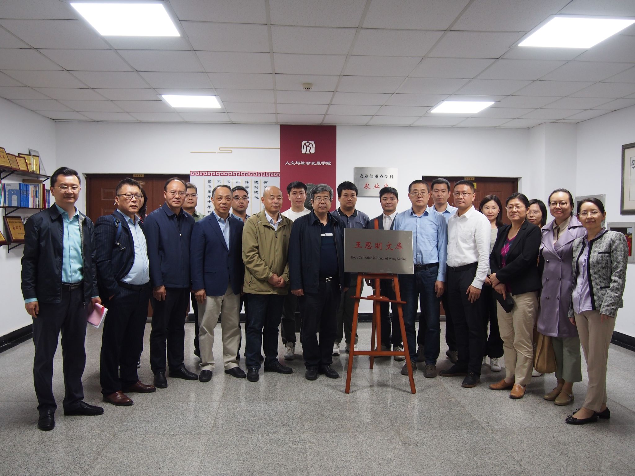 之后,周建波教授、王加华教授、卢勇院长以及王思明教授第一位博士研究生沈志忠教授一起为“王思明文库”的牌匾揭牌。随后,在卢勇院长的带领下,各位领导、王门弟子以及师生代表参观了王思明文库,为还原的办公现场而感怀,也为充满学术气息的文库而欣慰。