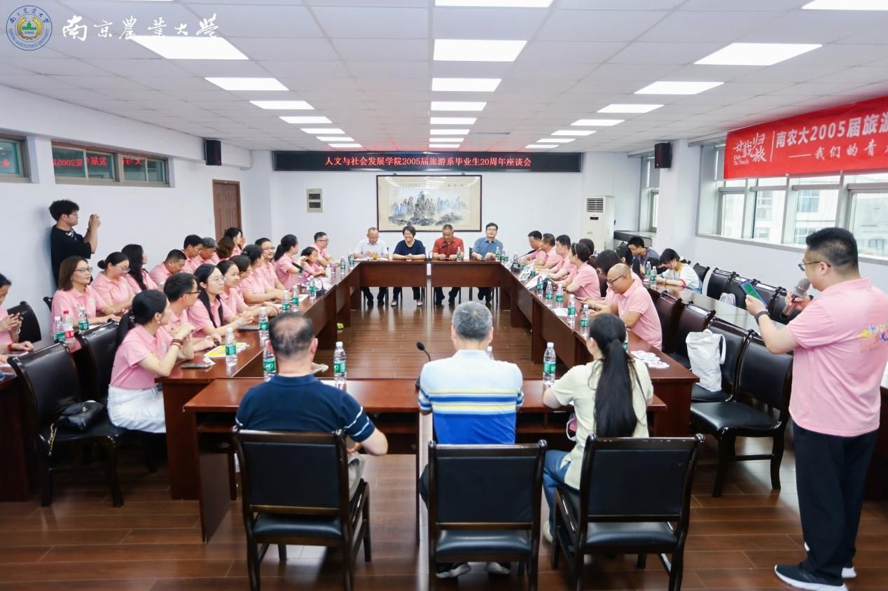 2005届旅游系毕业生毕业二十周年返校活动在卫岗校区举行。来自旅游11、旅游12、旅游师资11班的40名校友跨越山海,重返母校,共叙同窗情谊,追忆青春岁月。