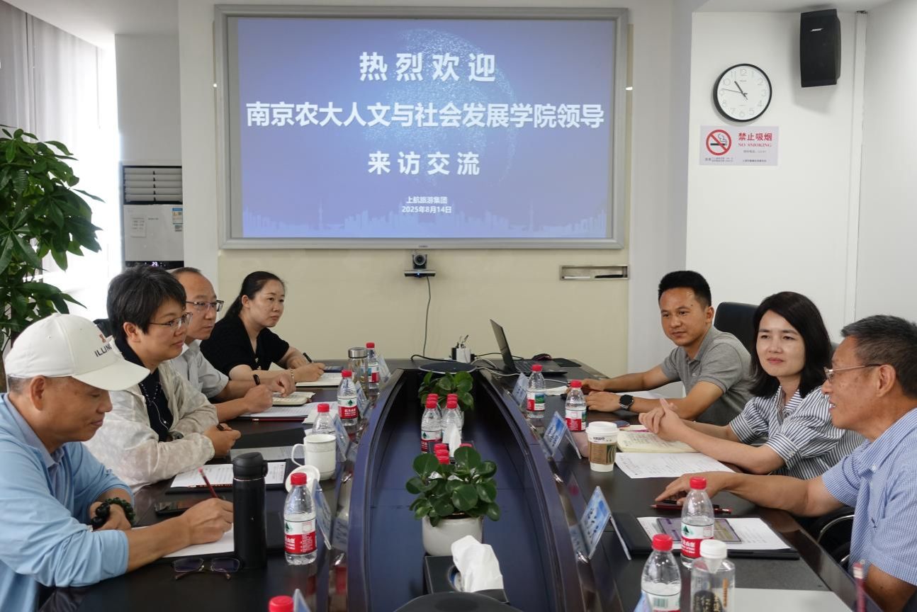 学院一行走访了上海航空国际旅游(集团)有限公司。上航旅游集团副总经理戴嘉瑶,文旅公司执行副总经理、南农2011届旅游管理专业校友王伟,旅游研究院院长陈元夫等出席交流座谈。会上, 上航旅游集团介绍了企业发展历程、产业布局与人才需求情况。双方就文旅产业融合发展趋势、校企合作模式、行业人才培养路径等议题进行了深入研讨,并就建立实习实践基地、搭建学生就业平台达成了初步共识。