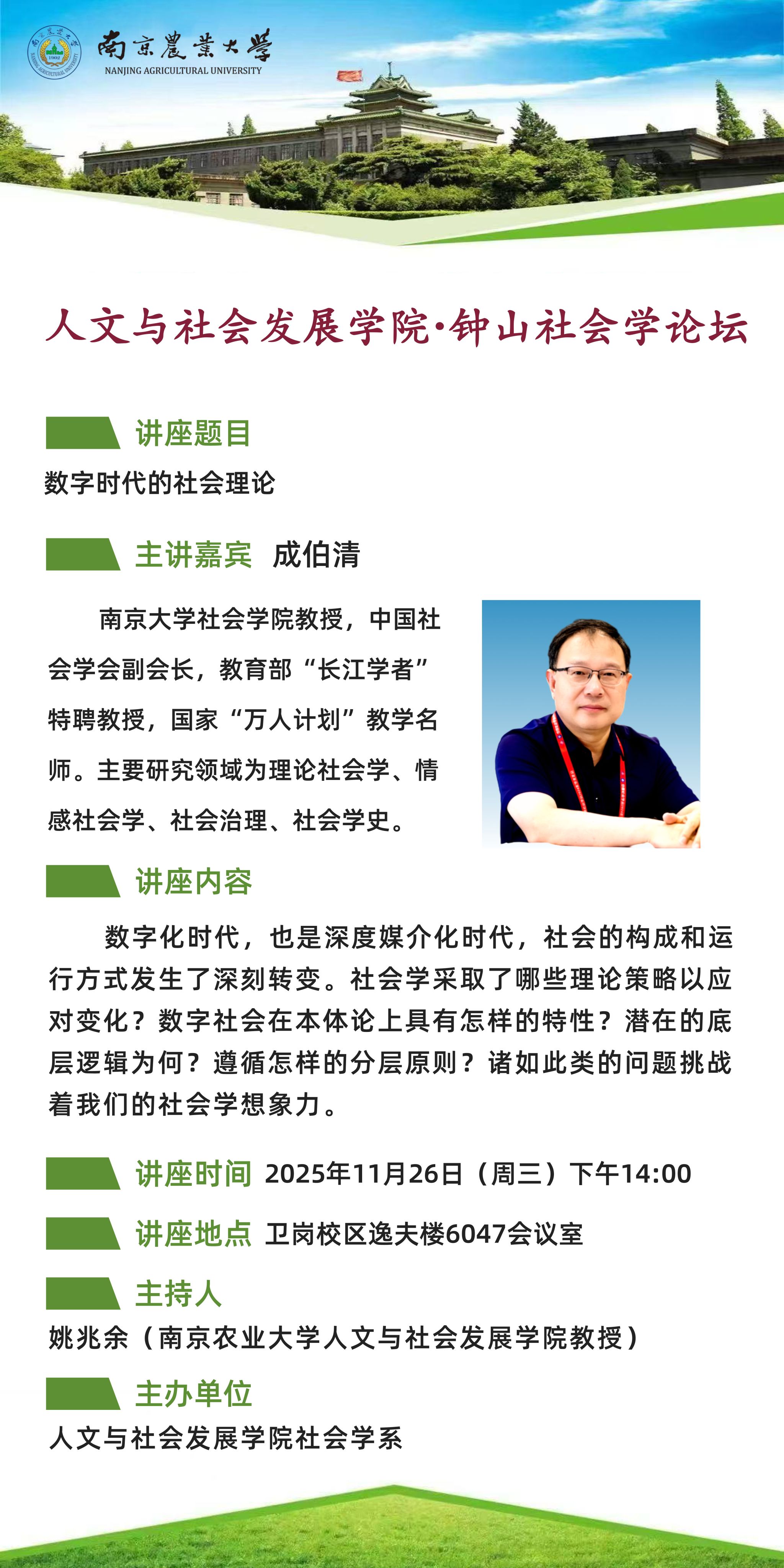 讲座预告|成伯清:数字时代的社会理论