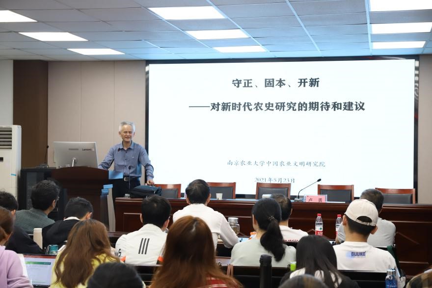 的学习与工作经历,指出我校农史研究的前辈学者们对他学术经历的影响。他强调,在新的时代背景下,农史研究首先要坚持理论研究与实践研究相结合的方法;其次要发掘传统农业中的智慧,为缓解现代农业生产中遇到的问题寻找新的解决方案;最后要密切关注时代需求、社会需求,为乡村振兴、生态环境保护、农业文化遗产保护等重大战略提供历史借鉴。