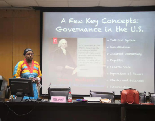 逸夫楼举行。主讲人辛西娅.麦金尼女士为美国政治家和活动家,美众议院前议员,2008年美国绿党总统候选人,也是美国历史上第一位参与总统选举的黑人女性。她曾公开反对伊拉克战争,并批评美国政治成为大财团利益的现象。