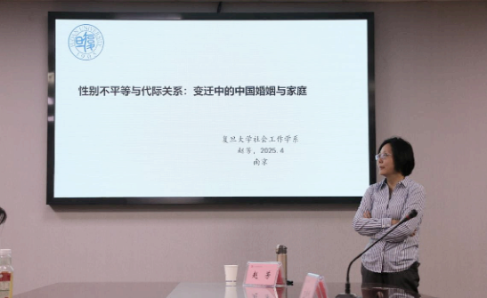 主办的学术讲座在此举行。复旦大学社会发展与公共政策学院社会工作学系主任赵芳教授受邀担任主讲人,以“性别不平等与代际关系:变迁中的中国婚姻与家庭”为题展开深度剖析。讲座由戚晓明副院长主持,现场讨论热烈,学术思辨氛围浓厚。