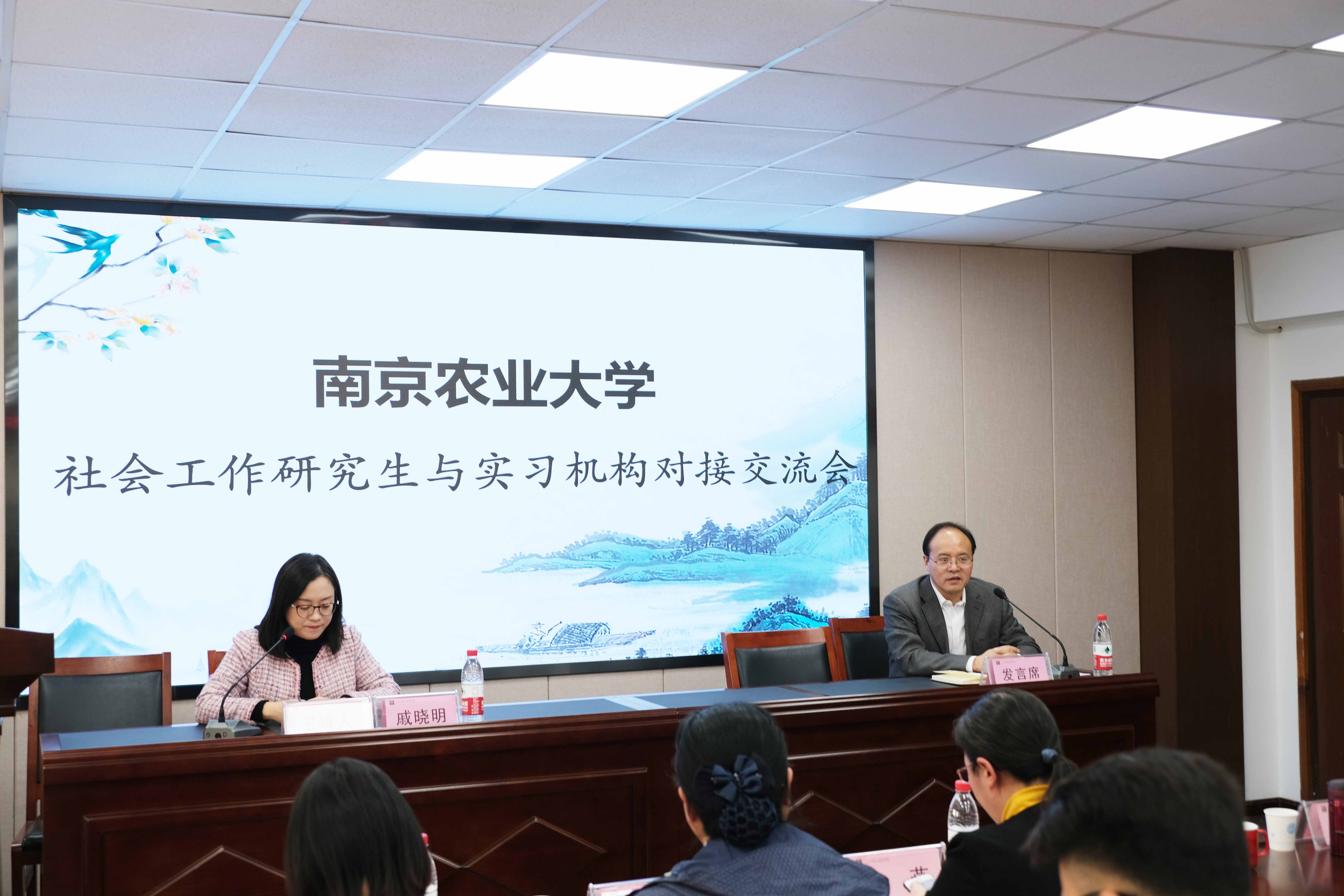 随后,11家机构负责人或代表分别介绍了机构概况和目前开展的服务项目,并对研究生实习工作提出了期望和要求。其中,江苏省民政厅机关党委专职副书记、江苏省养老服务指导中心主任、江苏省老年公寓院长孙燕表示,江苏省老年公寓作为省级养老服务平台,长期以来秉持个性化服务的理念,拥有经验丰富的养老服务专家,能够为南农社工实习生提供足够的成长空间。南京市心贴心老年人服务中心副主任张莲娣介绍了长期以来与南农MSW合作培养社会工作研究生的情况,表达了对实习生的希冀和期待,希望研究生在实习中逐渐掌握实务方法和技能,逐步成为能够承担项目服务的社工人才。悦民社会工作服务中心总干事徐晓辉介绍了该机构多年来开展青少年健康成长服务工作的过程和成就,充分肯定了我校社会工作研究生在实习过程中的认真态度、敬业精神和责任担当。交流会上,2019级社会工作研究生陈奇结合自己的实习工作,介绍了实习期间在知识增长和能力提升方面的收获。