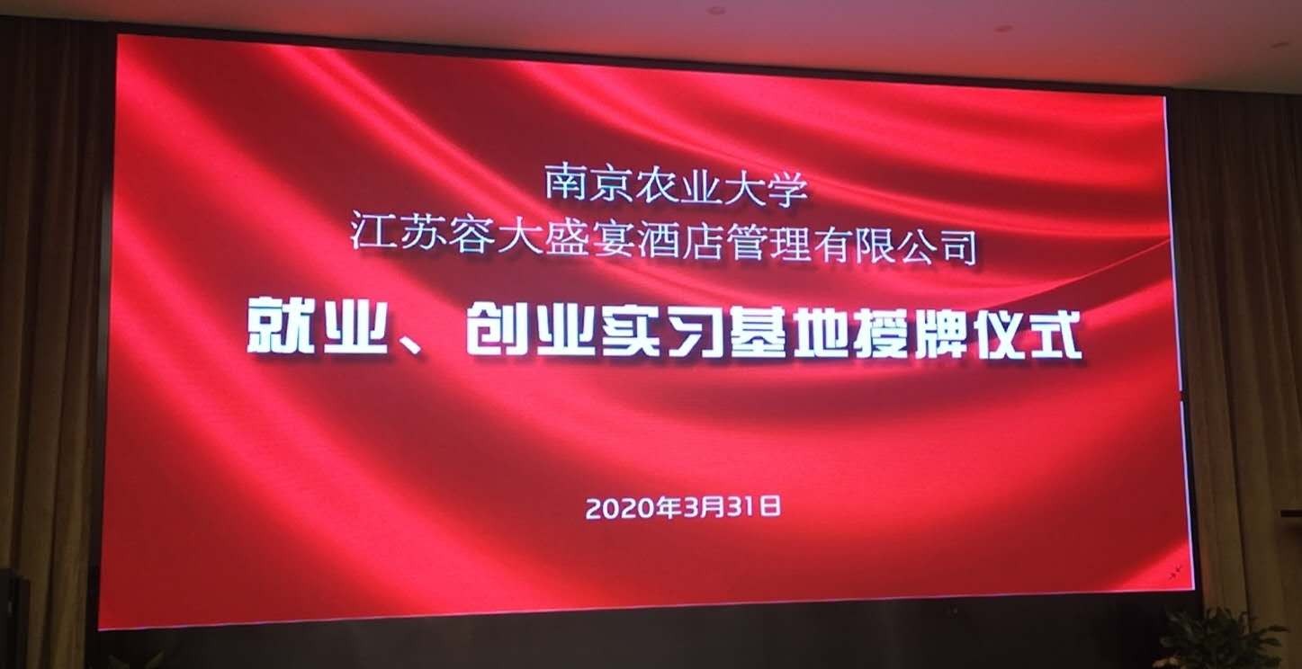 与校友企业江苏容大盛宴酒店管理有限公司在江苏容大盛宴酒店举行就业创业实习基地授牌仪式,签订就业创业实习基地协议。出席本次授牌仪式的有做爱片